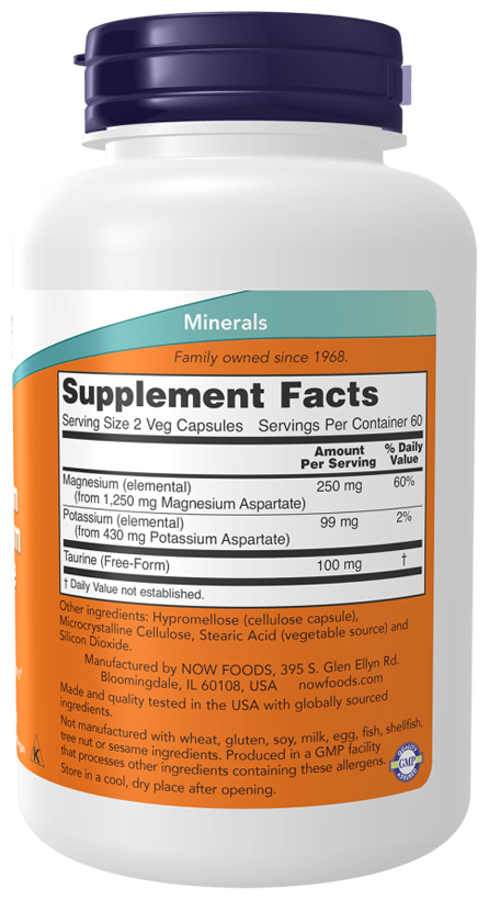 NOW Magnesium & Potassium Aspartate, 120 капсул