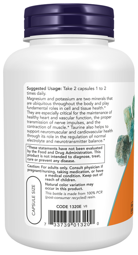 Магний и калий - два минерала, которые содержатся в организме и играют ключевую роль в здоровье клеток и тканей. Они имеют особо важное значение для сохранения здоровья сердца, нормальной работы сосудов, передачи нервных импульсов и сокращения мышц. Играя роль в регуляции нормального баланса электролитов и нейромедиаторов, таурин также поддерживает нервно-мышечное и сердечно-сосудистое здоровье.