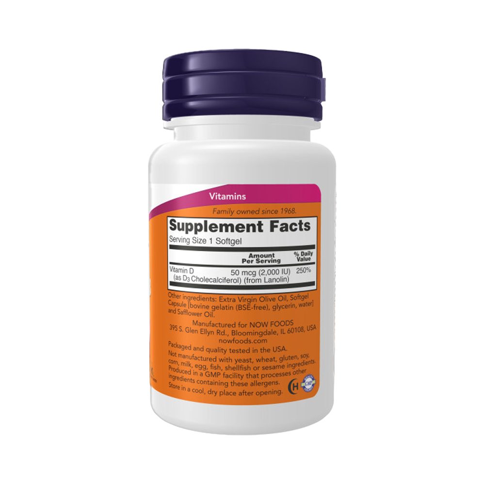NOW High Potency Vitamin D-3 2000 IU, Высокоэффективный витамин Д-3 2000 МЕ, 120 капсул